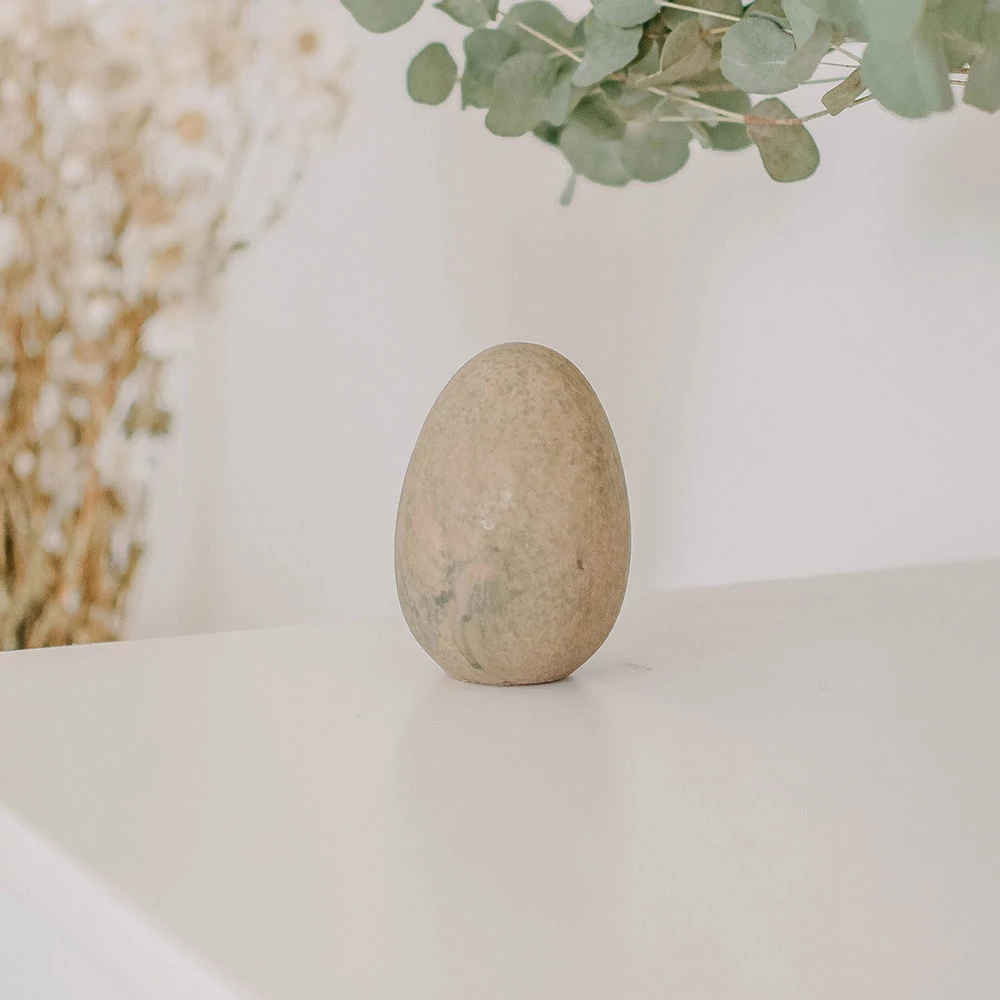 Matt felületű, koptatott kerámia tojás.