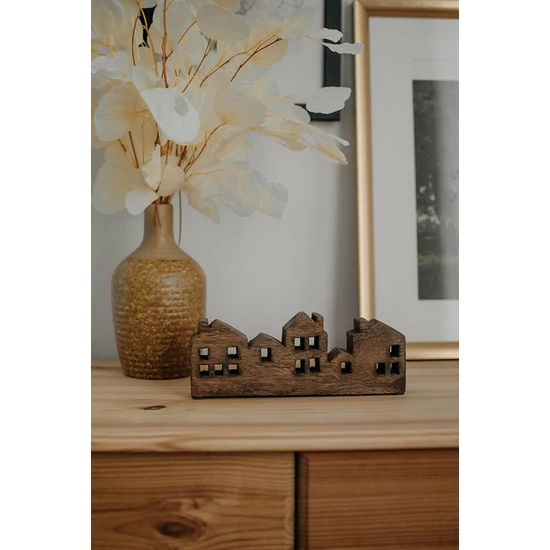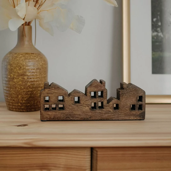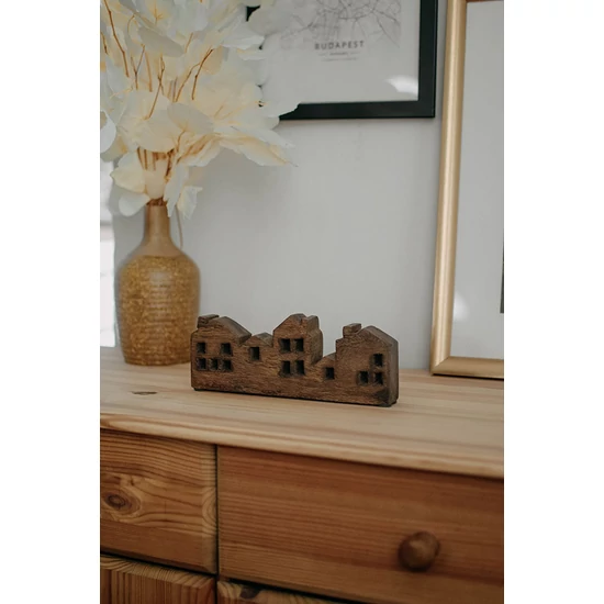 Sötétre pácolt tömörfa házikó dekoráció. Természetes, időtálló formavilág. Méret: 20x3x7,5 cm
