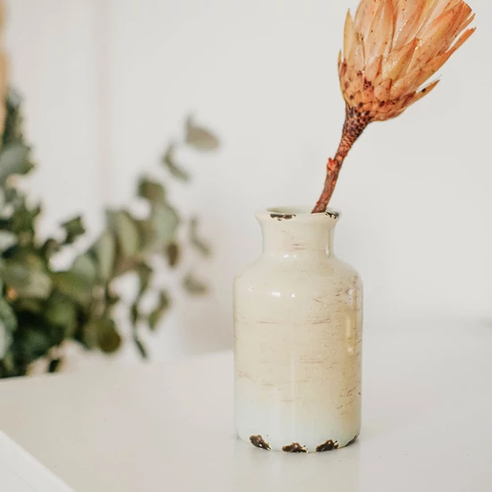 12 cm magas, kerámia váza. Vékony szárú növényekhez ajánljuk.