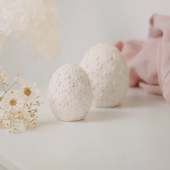 Húsvéti dekoráció - virágos tojás - fehér - 9 cm