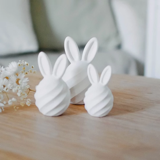 Csavart, duci testű, nagy fülű "nyuszi" formák három méretben.