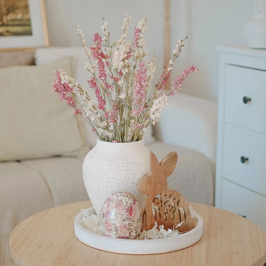 30 cm átmérőjű, színes-natúr színvilágú dekor szett. A szett ára termékenként vásárolva kb. 24.700 Ft. Minden, a képen lévő elemet (tálca, dekorációk) tartalmaz. Bővebben lásd a hosszú leírást. |