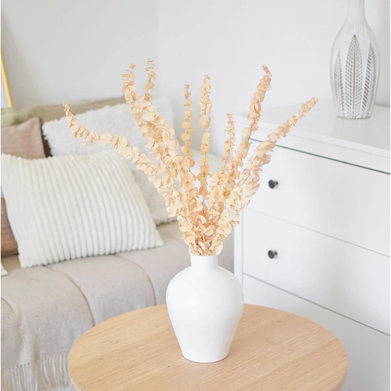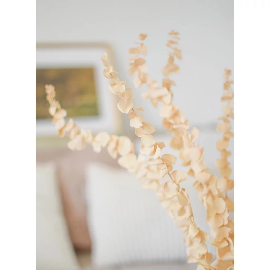 | Preparált, tehát extra tartós, kezelt eukaliptusz. A terméknek jellegzetes illata van, amit a tartósítás okoz, ez 2-3 nap alatt kiszellőzik. A levelek tapintása puha. A csokor kb. 50 cm magas. Tartóssága 3+ év. | |