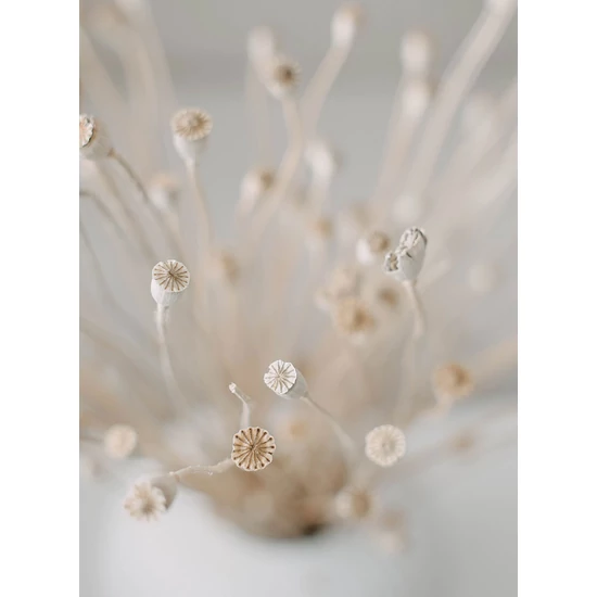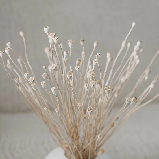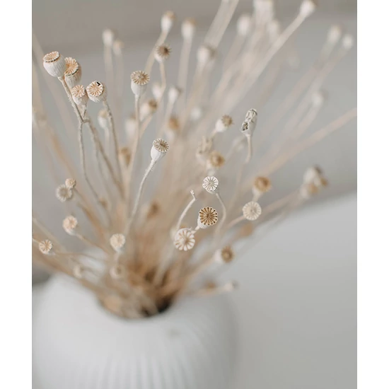 | Eddig nem tudtuk, most már gyanítjuk, hogy a pipacs és a mák rokonok lehetnek. :) Ez a csokor ugyanis úgy néz ki, mintha apró mákfejeket tettünk volna össze, pedig nem. :) A szárak nagyon merevek, a növénynek nincs illata és nem is hullik. | |