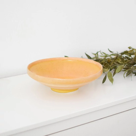 Meleg sárga árnyalatú, hazai kézműves kerámiatál, amely egyszerre praktikus és dekoratív.