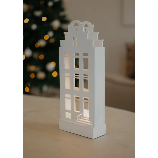 Karácsonyi dekoráció - Belga házikó - fa - ledekkel - 20 cm