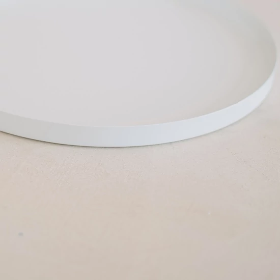 Fehér színű kerek fém tálca.
