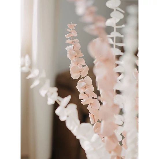 | Fehérített és festett, tartósított "baby blue" eukaliptusz. Nem szárításos, hanem preparációs eljárással tartósítják, ezért nem hullik, fogása puha, a friss levélhez hasonlítható. A leghosszabb ág 60 cm. Mindenképp vékonyabb (kb. 3 cm) nyakú vázába ajánljuk. | |