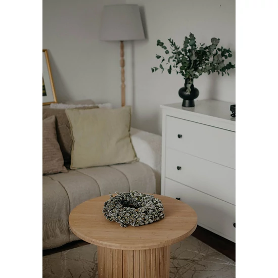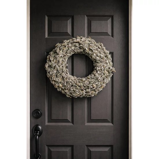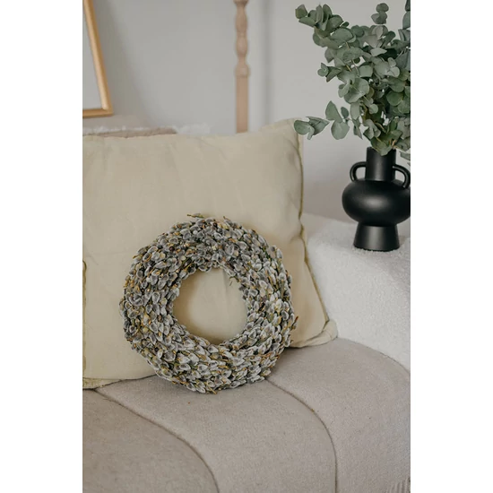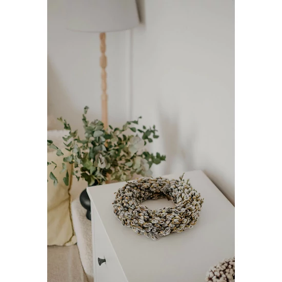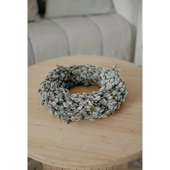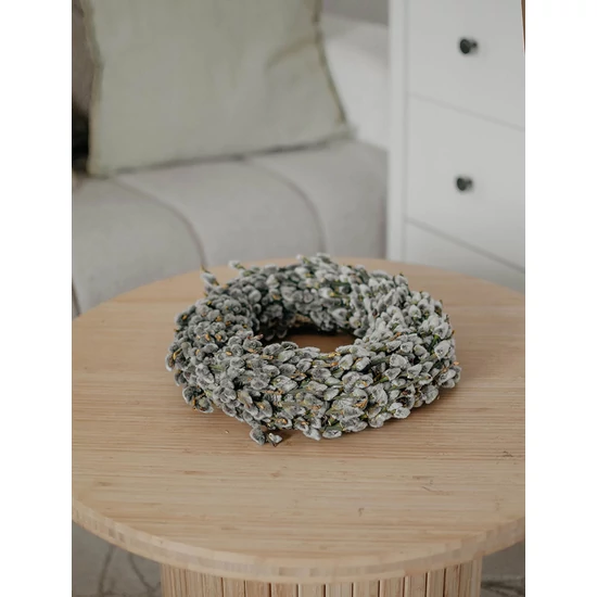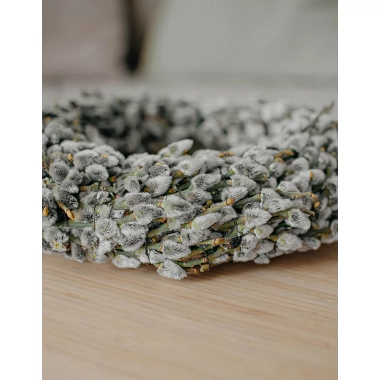 | A tavasz első puha érintése kopogtató formájában. Nagyon szeretünk tavasszal barkával dekorálni, hisz ez az egyszerű növény a megújulás és a remény szimbóluma. A kopogtató 20 cm-es alapra, vad barkából kötött. Átmérője kb. 27 cm, vastagsága 7 cm. | |