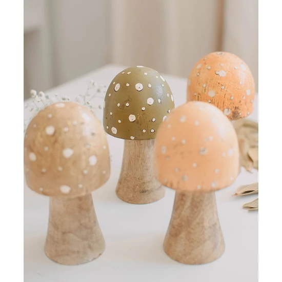 13 cm magas rusztikus fa gomba dekoráció. Mérete: 7x7x12,5 cm