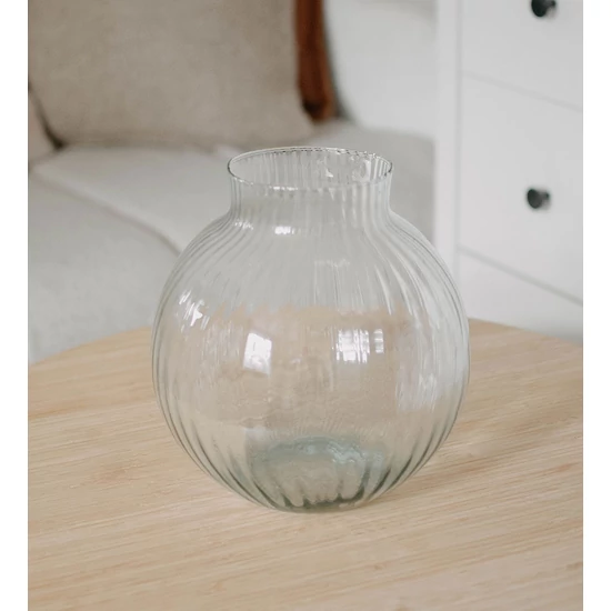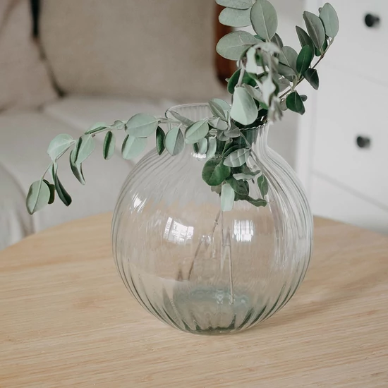 Nagyobb méretű bordázott üveg váza. A nyak átmérője: 10 cm.