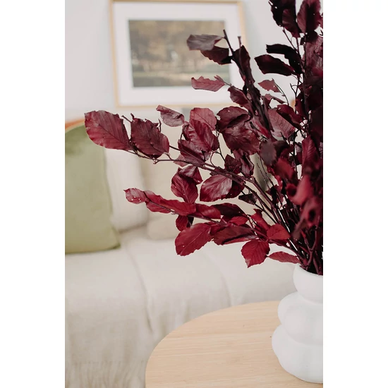 | Tartósított, tehát évekig tartós, természetes, nagy méretű bükkfacsokor. Széles nyakú vázába ajánljuk. A tartósítás miatt lehet kissé szúrós illata, ha frissen tartósított növény érkezik, de ez meleg levegőn kiszárítva elmúlik. Mi is igyekszünk a lehető leginkább kiszárítani a növényeket postázás előtt. 60 cm magas csokor. | |