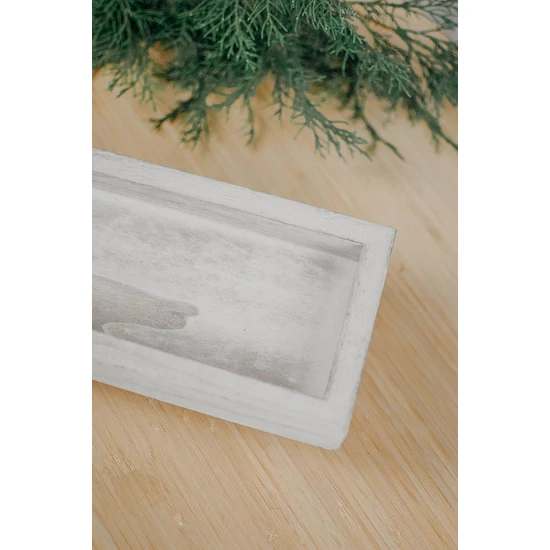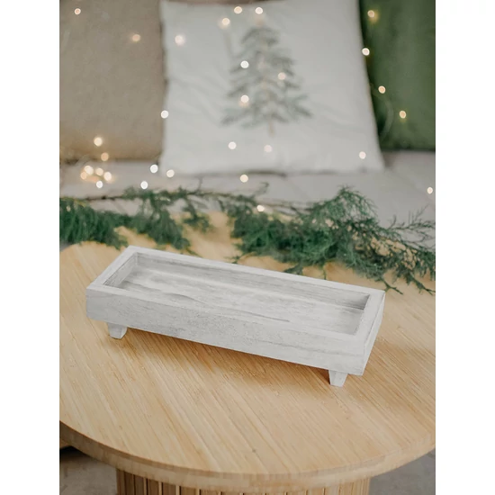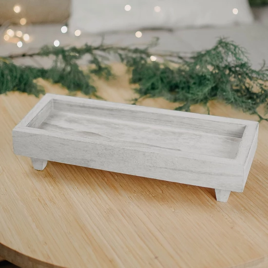 Tálca - fa - lábakkal - fehér - 32x12 cm