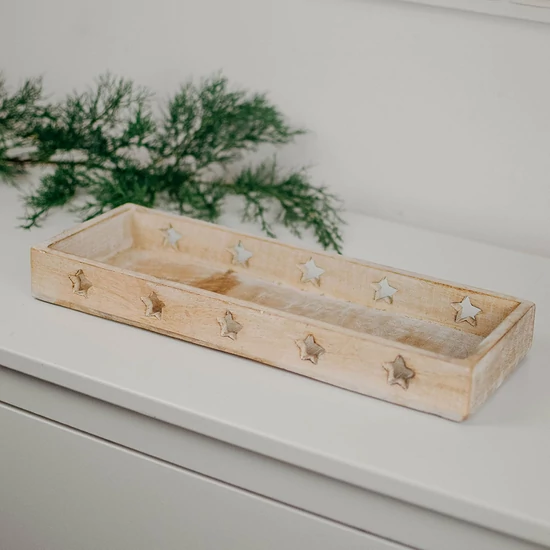 Tálca - fa - csillagokkal - 40x14 cm
