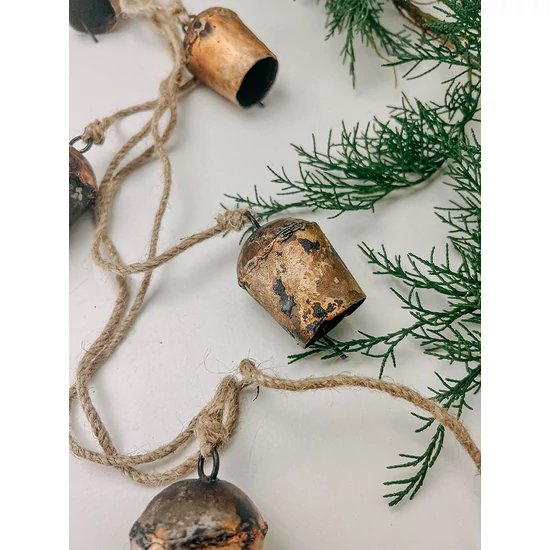 | 80 cm hosszú kolomp füzér antik arany kolompokkal.Használhatod kandalló, komód, szekrények oldalára akasztva, de koszorú közepére is felhelyezhető. | |