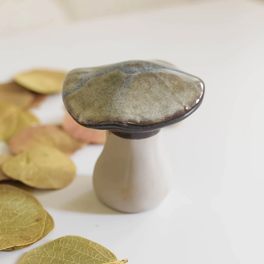 7 cm magas bézs-krém kerámia gombák. Egyedi formájukkal és természetes színeikkel stílusosan illeszkednek bármilyen dekorációba. :) A test matt, a kalapok különleges, fényes, random mintázatot kialakító mázzal van bevonva.